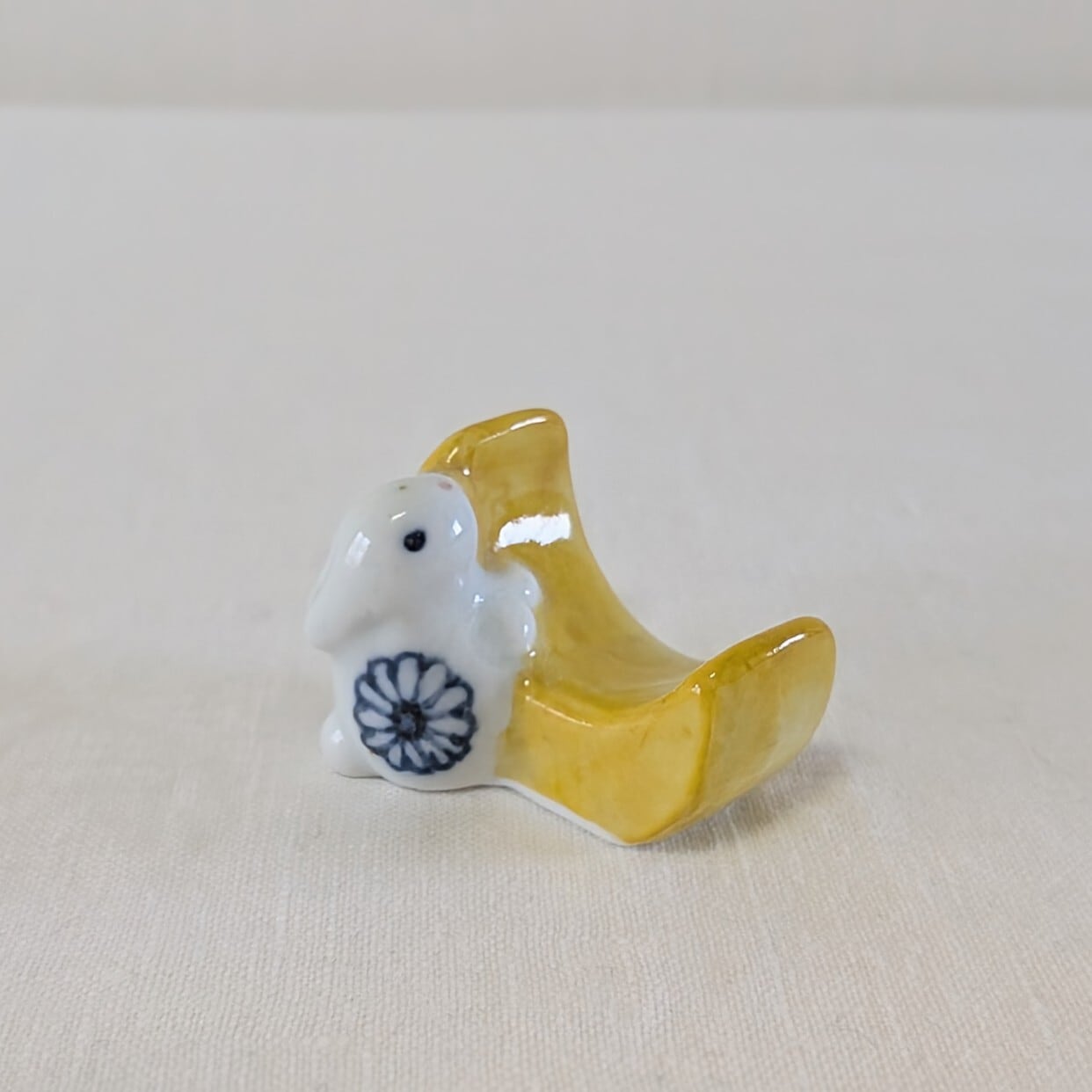 工房で土から一つずつ制作していて、お箸も置きやすい三日月形に小さいうさぎがくっついている見た目にも楽しい、目が合うと何だかほっこりしてしまう月うさぎはしおきです。